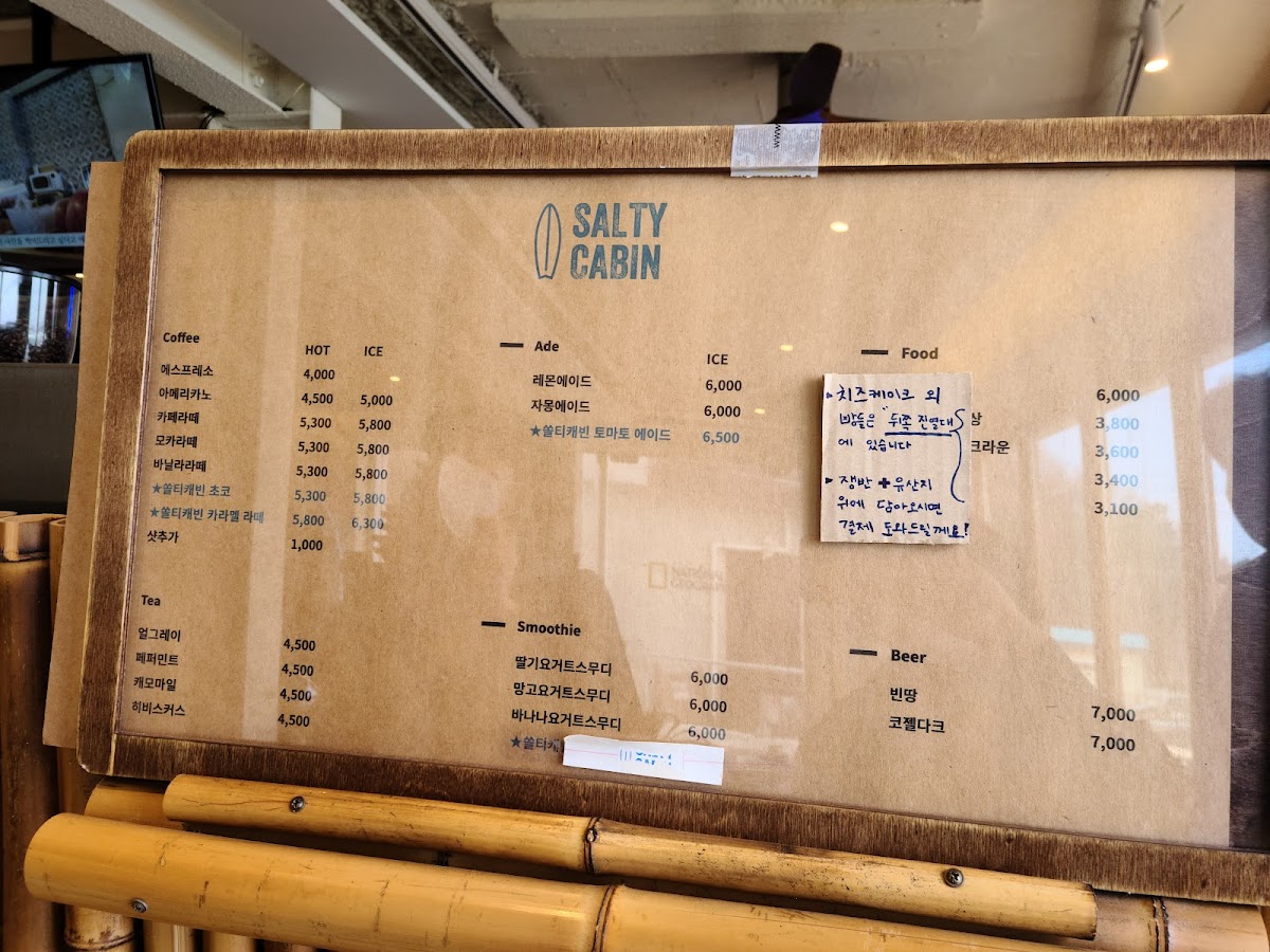 Welcome to Salty Cabin Yangyang, a charming café located in the surf-centric city of Yangyang, South Korea. Nestled at Saenaru-gil, this spot offers a delightful escape for surfers and coffee enthusiasts alike. The café’s interior beautifully reflects its coastal surroundings, echoing the serene vibes of Santorini with its thoughtfully curated surfing-themed decor.